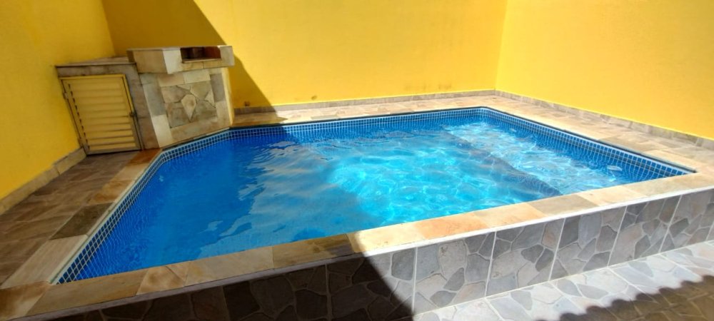 Casa com piscina em Mongaguá, 2 quartos, 1 suíte e 2 vagas