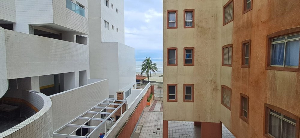 Apartamento de 55m² com 2 dormitórios sendo 1 suíte com sacada, visão parcial do mar á venda em Mongaguá no litoral Sul de São Paulo.