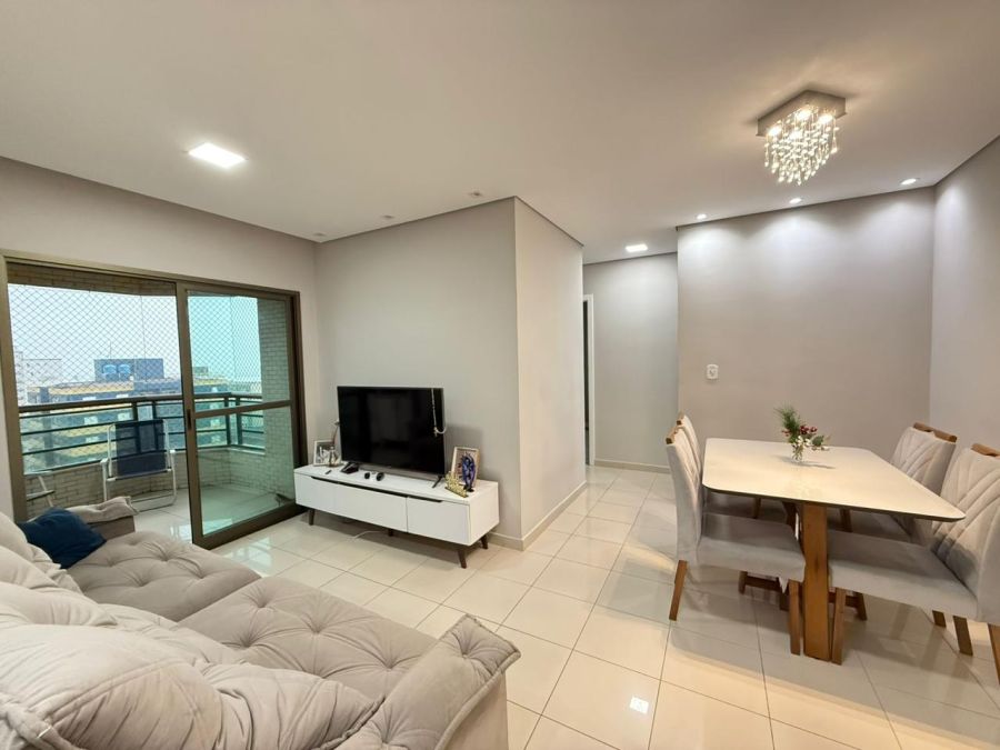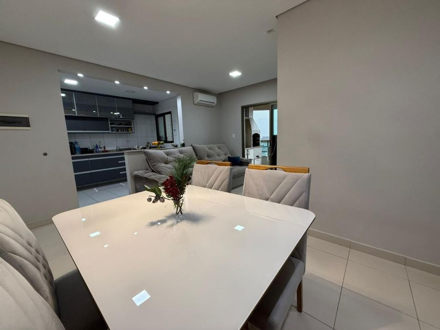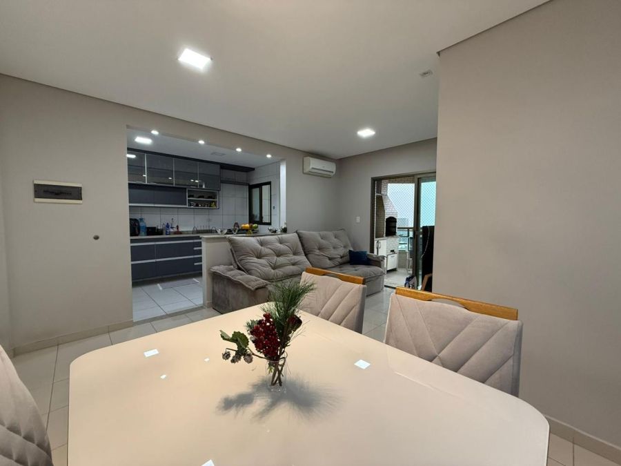 Possui 60m² de área útil com sala ampla para dois ambientes, cozinha espaçosa e funcional, área de serviço independente, 1 dormitório sendo 1 suíte com box de vidro, banheiro social com box de vidro, varanda gourmet com churrasqueira e uma vista incrível do mar, prédio com elevador e 1 vaga de garagem.